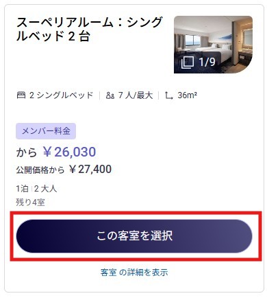Select the desired room type and press "Select this room".