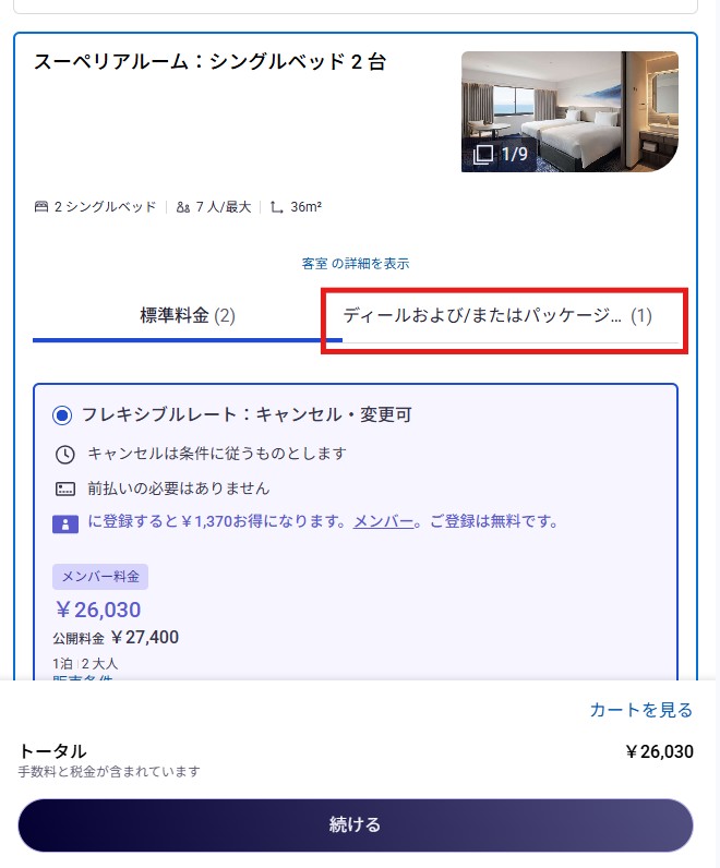 Select either early reservation or "All-inclusive" of flexible rate to proceed to the reservation.