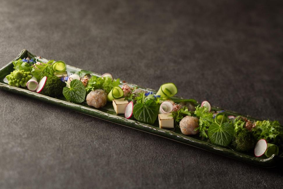 使用當季的食材,以自助餐形式提供能引出食材本來自然味道的料理。在活用當地的飲食文化的同時,增加了新的整理,海山的幸福的許多。